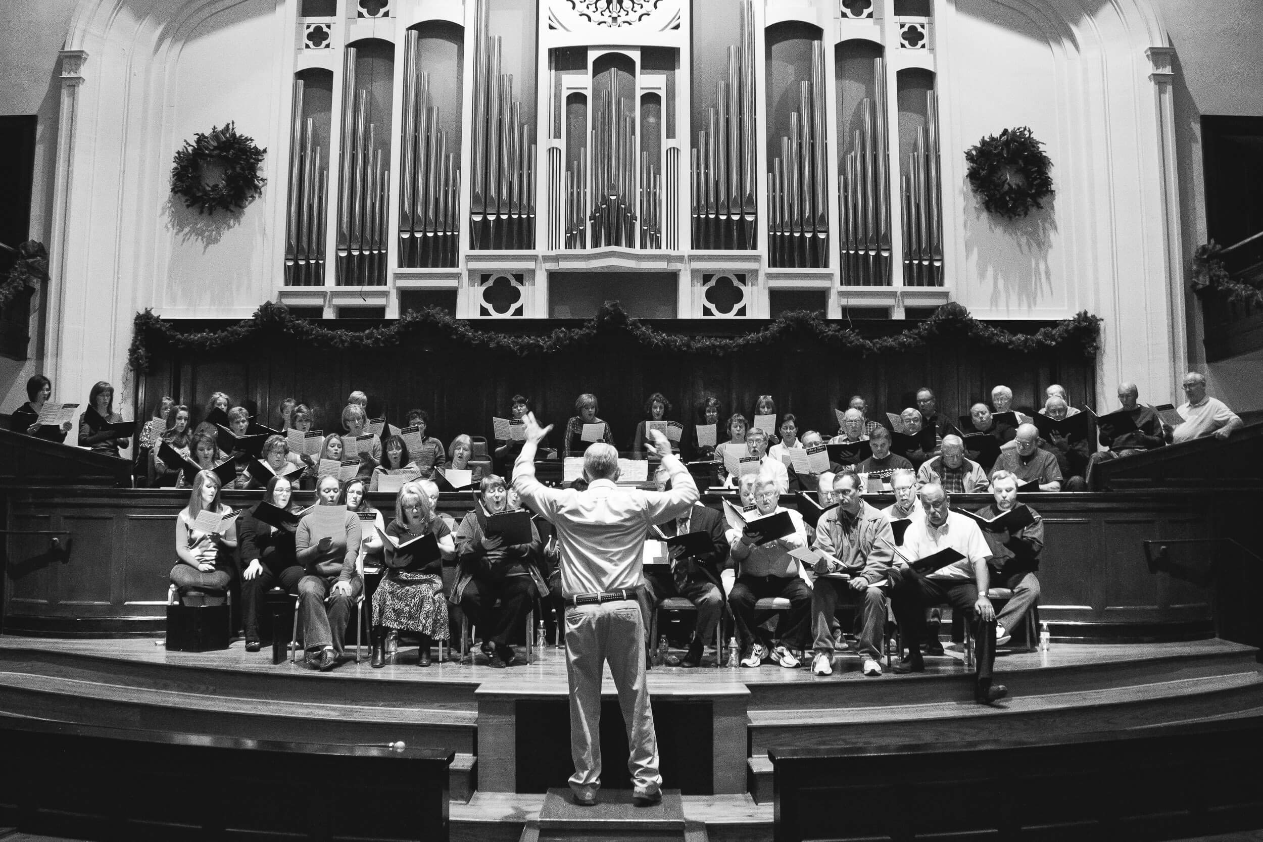 Our singers, guided by skilled leadership, have performed major works by Bach, Haydn, Mozart, Handel, Britten, Mendelssohn, and Brahms, and the Chorale has produced ten concert recordings.